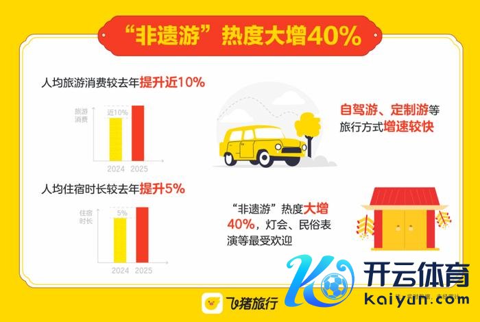 飞猪发布的《2025年春节假期出游快报》骄傲,追着非遗过大年景为这个假期旅游阛阓的顶流,包含非遗景点、非遗体验的“非遗游”热度较旧年大增40%。在“请2休11”“请4休13”的带动下,这个春节假期群众玩得更久、更远,阔绰也更多。飞猪数据骄傲,春节假期国内游东说念主均阔绰同比旧年进步近10%,东说念主均住宿时长同比进步5%。