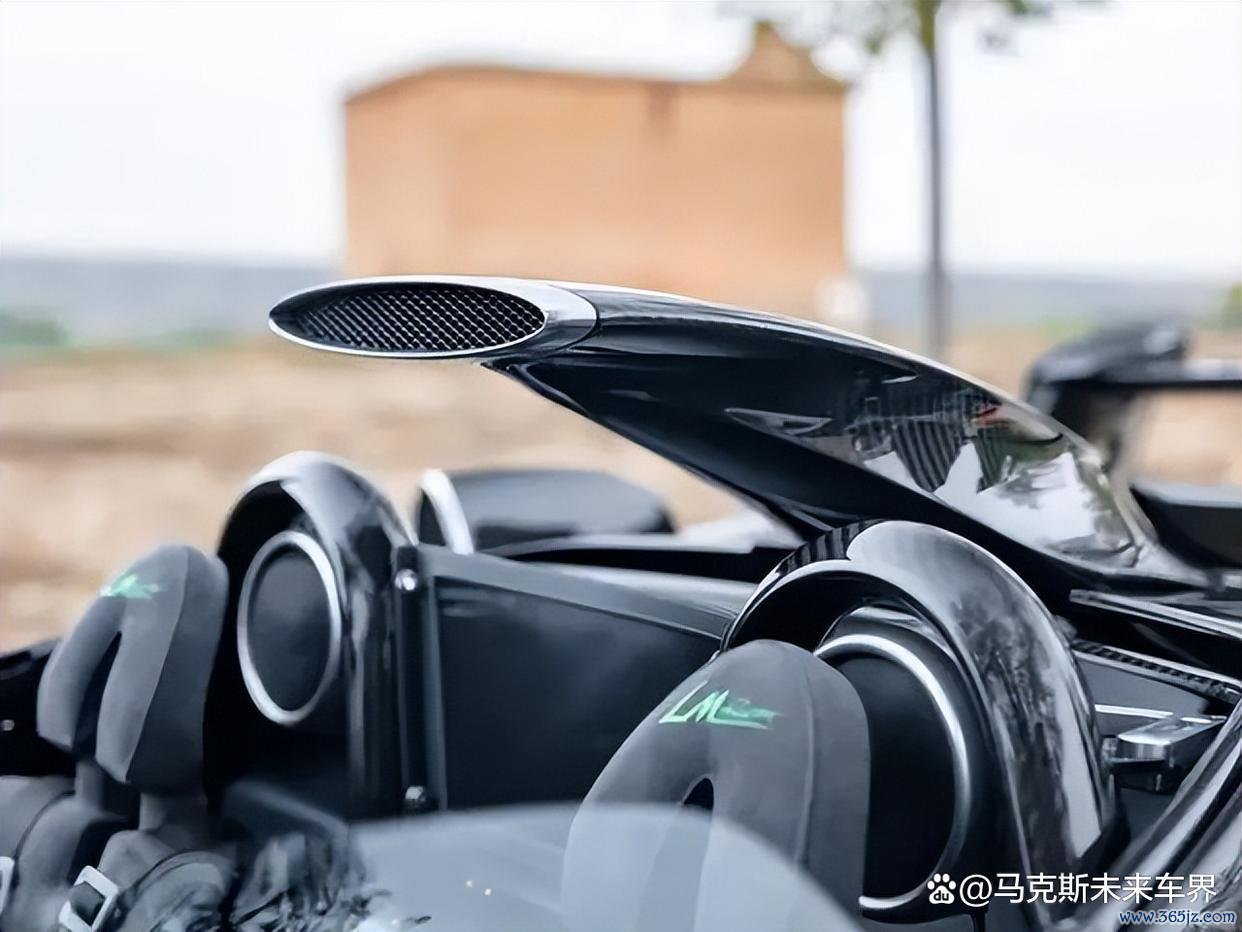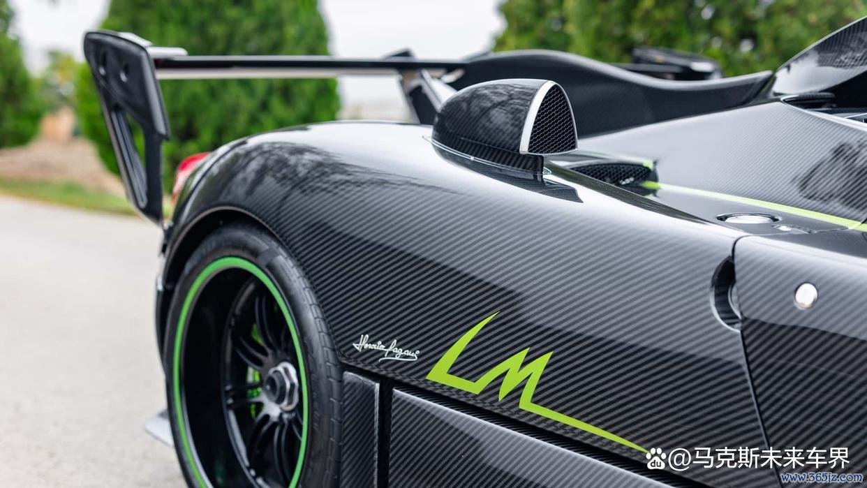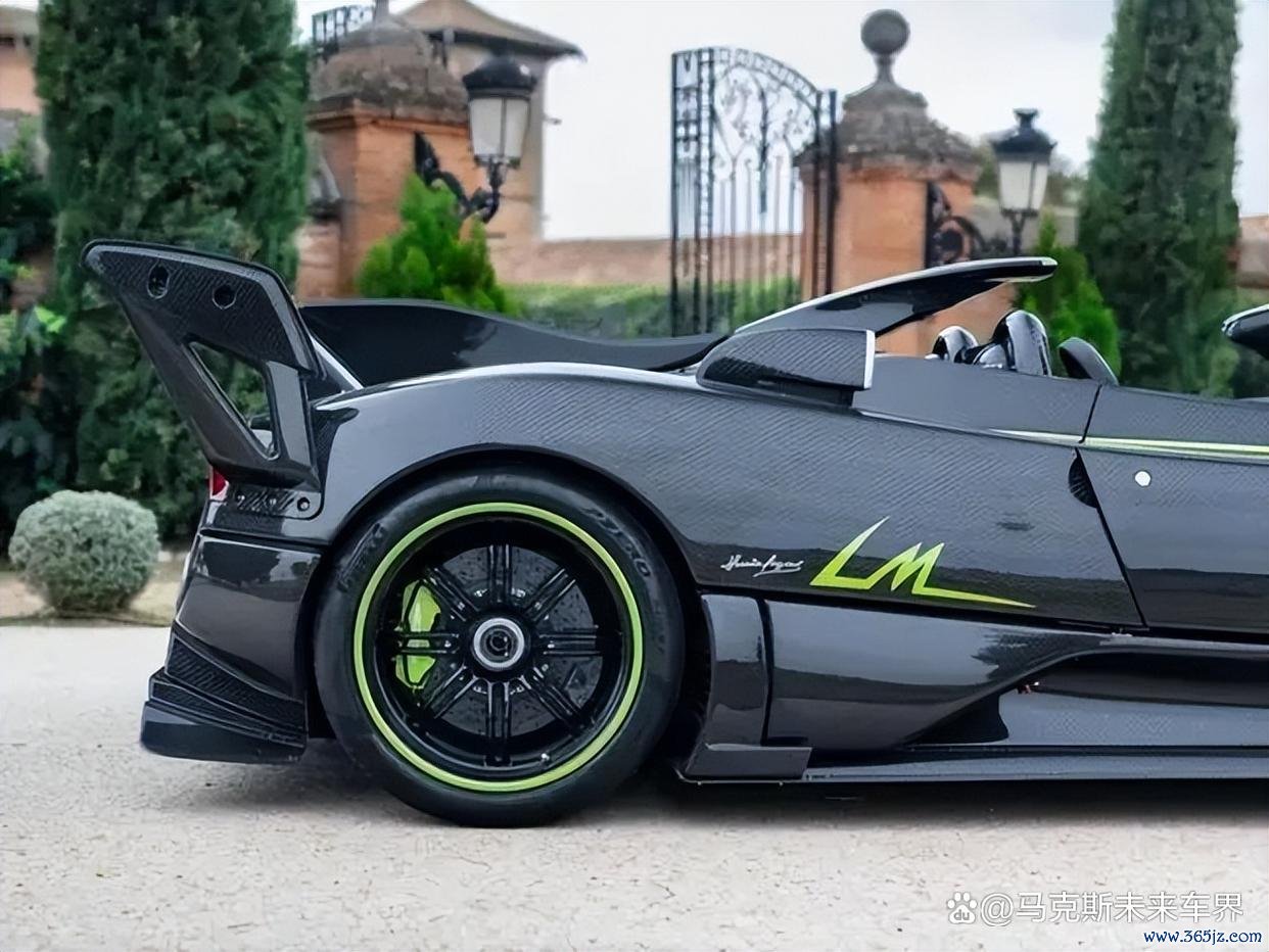 从像片中可明晰看到,LM 车型聘请源自勒芒赛车的立异性避讳式计算。其外不雅大面积欺诈流露碳纤维材质,尽显高端毒害,搭配绿色梗阻元素,更将帕加尼完好的面板拼接工艺展露无遗。车身细节处,Cinque、Tricolore 和 Zonda R 的绚烂性特征随地可见,如 Cinque 的侧裙、前扰流板等,还有 19 英寸 Zonda R 轮毂、Huayra 后视镜等繁多特质部件。