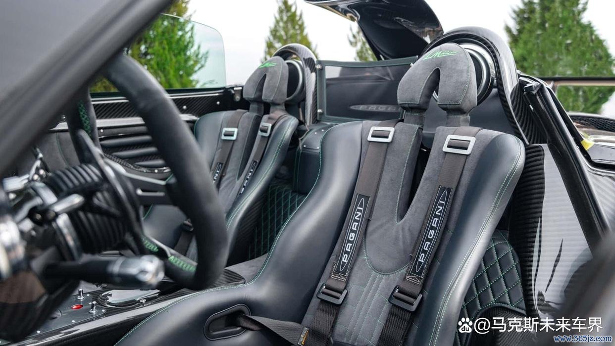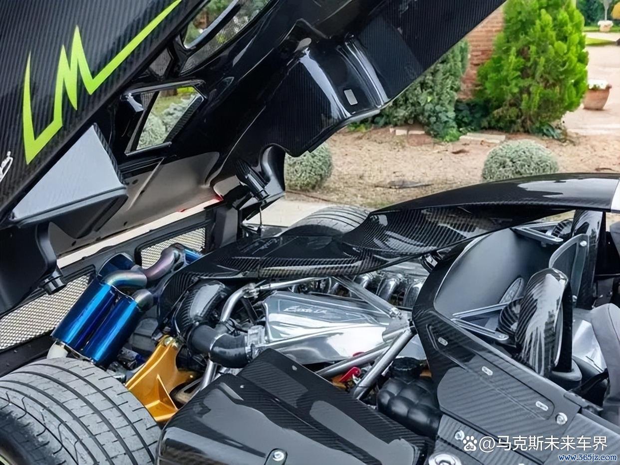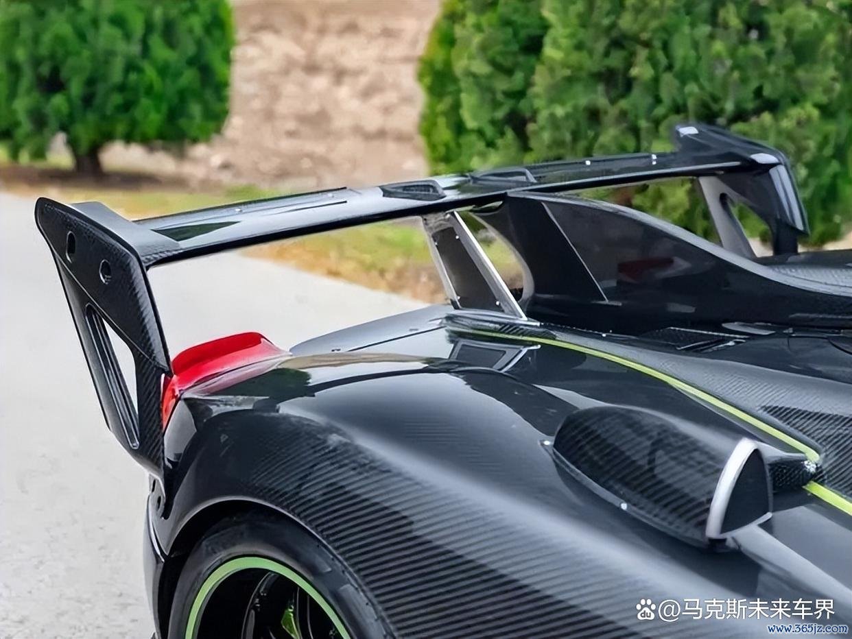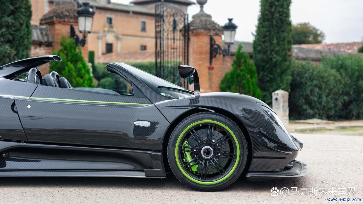 从像片中可明晰看到,LM 车型聘请源自勒芒赛车的立异性避讳式计算。其外不雅大面积欺诈流露碳纤维材质,尽显高端毒害,搭配绿色梗阻元素,更将帕加尼完好的面板拼接工艺展露无遗。车身细节处,Cinque、Tricolore 和 Zonda R 的绚烂性特征随地可见,如 Cinque 的侧裙、前扰流板等,还有 19 英寸 Zonda R 轮毂、Huayra 后视镜等繁多特质部件。
