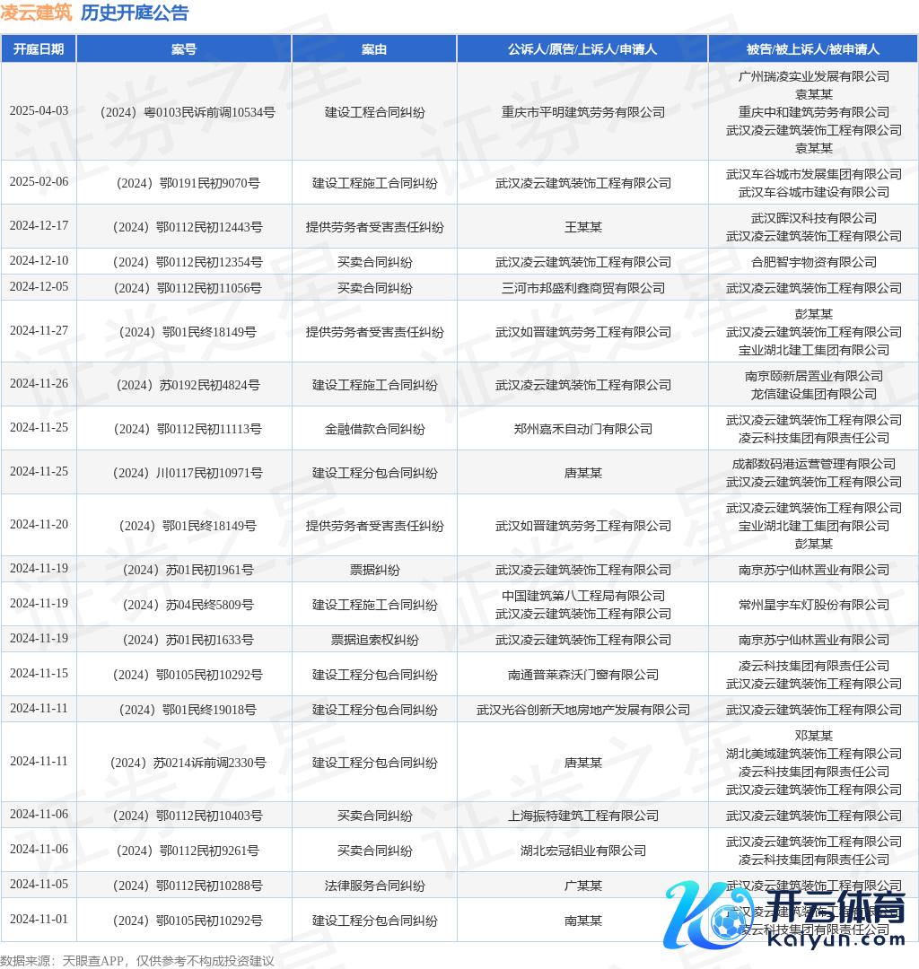 本站音尘,阐述天眼查APP披露开yun体育网,近日公布了一则武汉凌云建筑阻难工程有限公司行为原告/上诉东说念主的开庭公告,真贵本体如下: