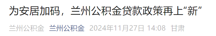 11月27日,据“兰州公积金”公众号音书,兰州对多项公积金贷款战略进行了养息,养息后的战略将于12月1日起认真践诺。