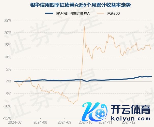 本站音书,12月30日,银华信用四季红债券A最新单元净值为1.0981元,累计净值为1.6301元,较前一交游日高涨0.0%。历史数据清楚该基金近1个月高涨0.97%开云体育,近3个月高涨1.75%,近6个月高涨1.94%,近1年高涨4.46%。该基金近6个月的累计收益率走势如下图: