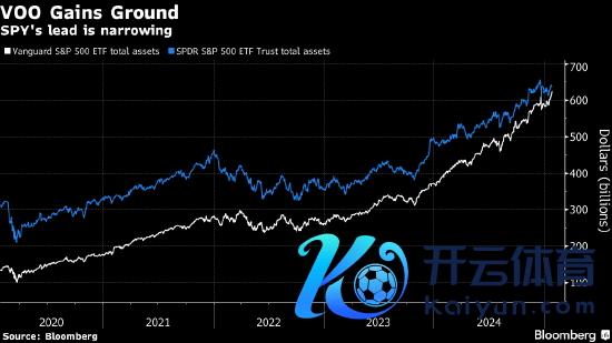 尽管VOO处于卓绝SPY的当先地位,但行业巨头贝莱德也收支不远。6100亿好意思元的iShares安硕中枢标普500 ETF(代码:IVV)畛域也飙升,仅昨年一年就吸纳了近870亿好意思元。当今IVV的费率与VOO相同为0.03%,但业内大众以为这种情况可能会转变。
