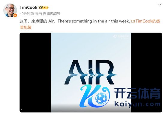 新浪科技讯 3月4日上昼音信开云体育,苹果CEO库克在其个东说念主微博上高慢,“这周,来点猛的Air。There’s something in the air this week. ”