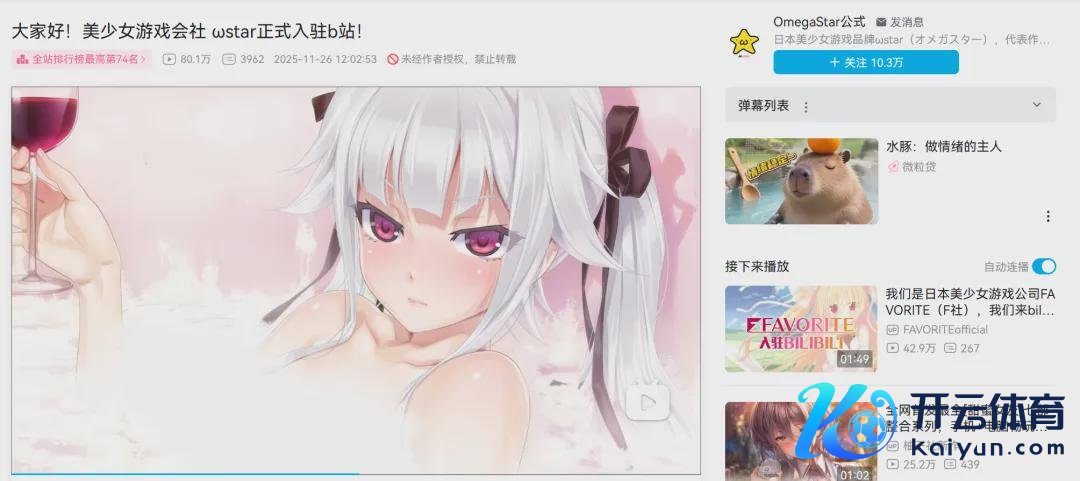 就在前几天,玩家们在B站发现了一家相等老到的游戏公司入驻。那等于日本视觉演义游戏厂商ωstar,他们在B站注册账号名叫OmegaStar公式,并第一本事发布了入驻B站的自我先容视频。