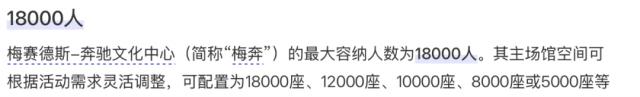 但梅奔是体育馆,容纳东谈主数也比拟少,最多18000东谈主👇