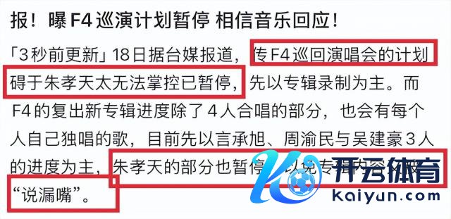 有媒体爆料他们的巡演标的暂停,原因是朱孝天不可控👇