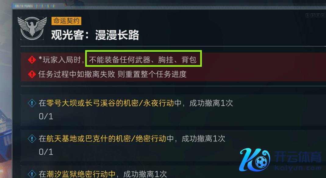 没错,这任务的中枢压根不是西宾你枪法多刚、意志多好。 它考的是你会不会“赖”。官方条目你不行带刀兵、胸挂、背包,只可穿个头甲,在潮汐监狱、巴克什、长弓溪谷这三张图里各撤一次,中间死了就全重新来。 听起来是地狱难度,但只好你滚动念念路,把我方当成一个隧说念的“不雅光客”,事情就简便了百分之八十。