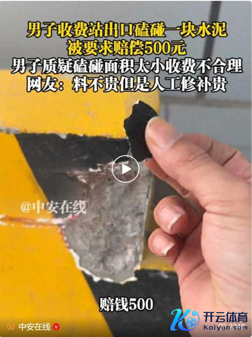据媒体报说念开云体育,12月17日,浙江一须眉在收费站出口磕碰一块水泥,被条款补偿500元。