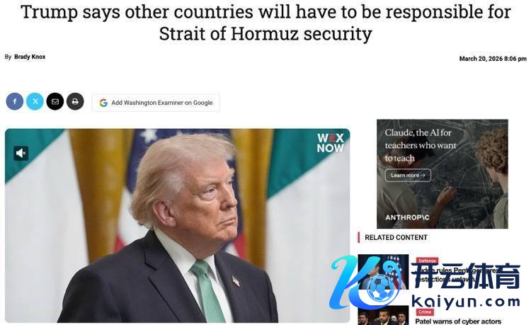 △好意思国保守派媒体《华盛顿不雅察家报》报谈,特朗普暗示,其他国度需要讲求霍尔木兹海峡安全
