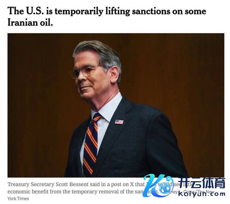 △《纽约时报》报谈,好意思国财政部3月20日暂时拔除对海上运输伊朗石油的制裁,财长贝森特算计此举将为石油市集加多约1.4亿桶原油供应