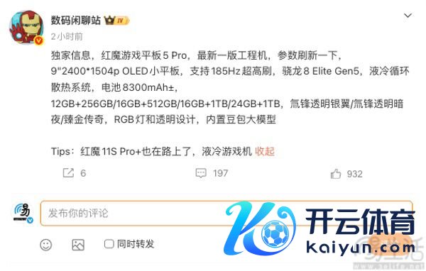 继此前红魔方面晓示行将推出平板新品红魔游戏平板5 Pro后,这款将延续游戏平板定位的机型也蛊卦了迢遥玩家一又友的情态。跟着红魔游戏平板5 Pro产物端计议信息的持续曝光,近日有音讯源炫耀了这款机型硬件成就方面的进一步信赖,并称其将配备9英寸屏幕。