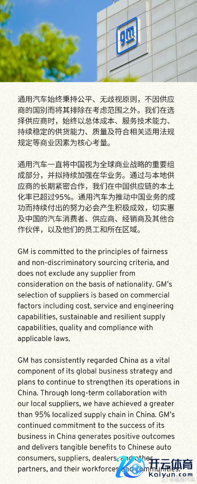 通用汽车:公司在中国供应链的原土化率已跳动95%欧洲杯体育通用汽车:公司在中国供应链的原土化率已跳动95%